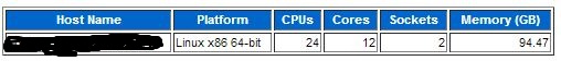 This will give you name, platform CUP, socket and RAM etc. Important thing to notice is number of cores into the system. In this example there are 12 CUP’s in Cores.